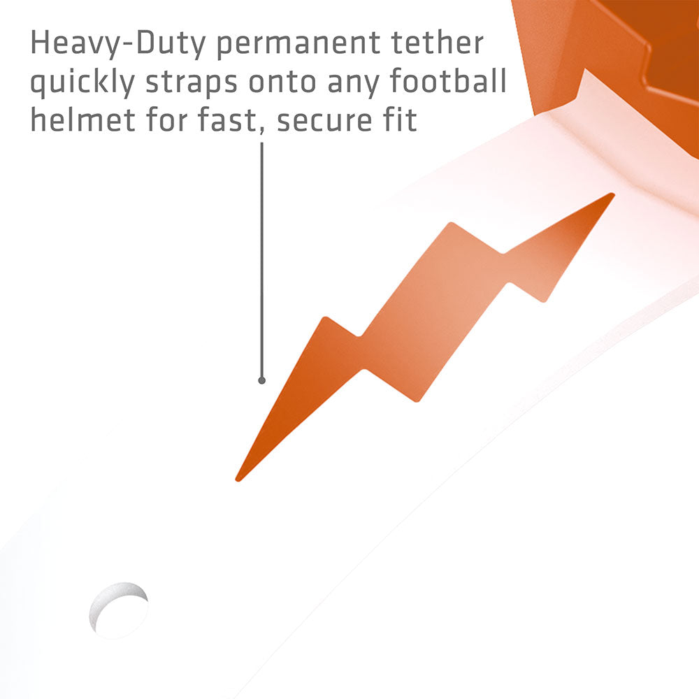 Bring the Thunder—this lip guard is ready to start on game day right out of the box with a no-boil, instant fit. Breathe easy with a high-flow breathing channel and the heavy-duty permanent tether attaches quickly and securely to any football helmet.